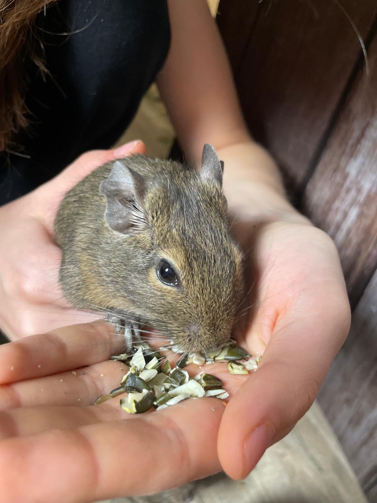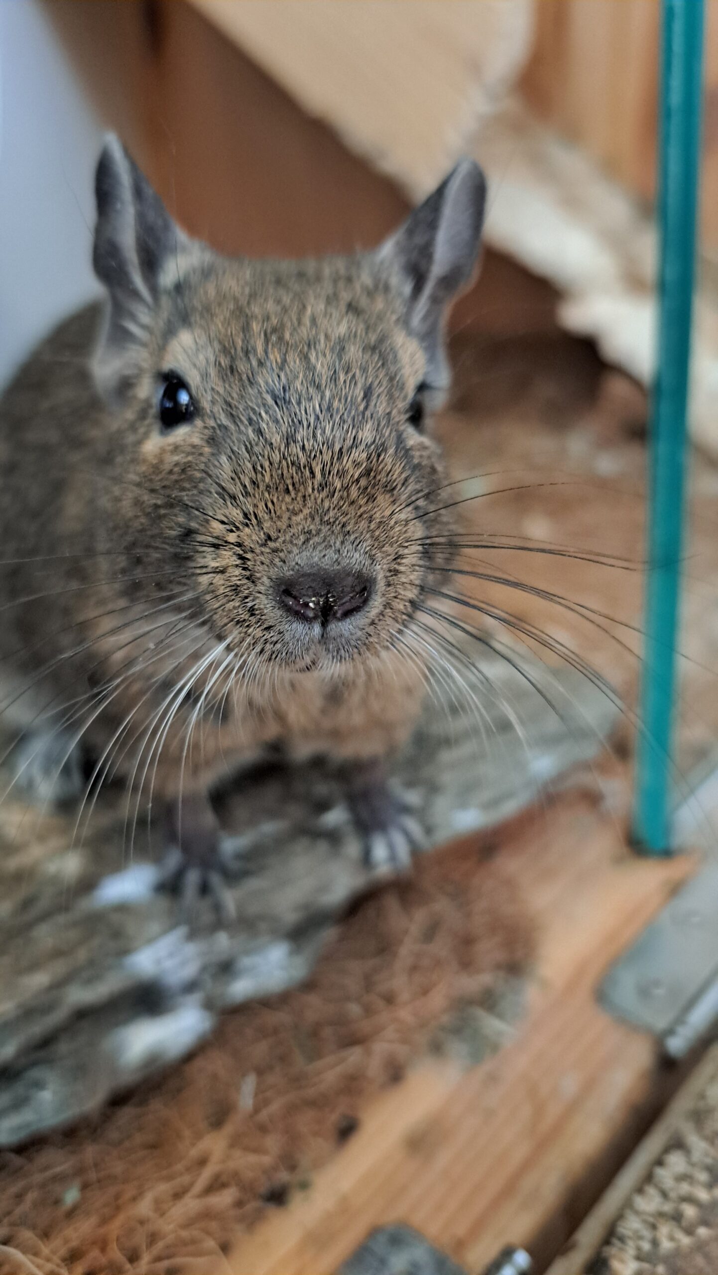 Die Mädels sind für Degu-Neulinge gut geeignet, da neugierig und offen. Sie kommen auch auf die Hand, sofern es Sonnenblumenkerne oder ähnliches gibt. Sie klettern auch auf uns herum und beißen nicht. Wir wünschen uns NussgeberInnen, die sie zu schätzen wissen und ihnen ein Zuhause mit viel Zuwendung geben möchten.