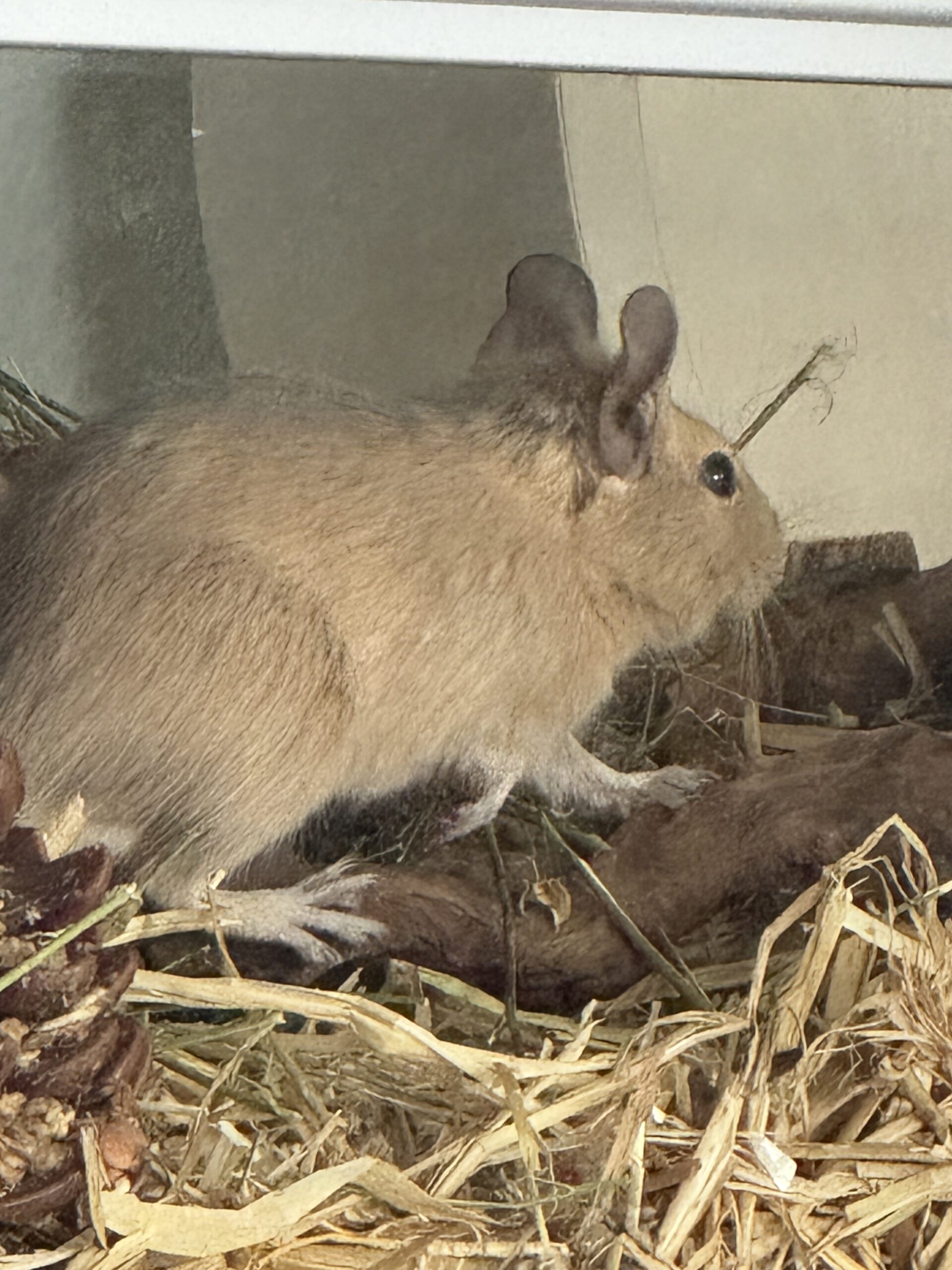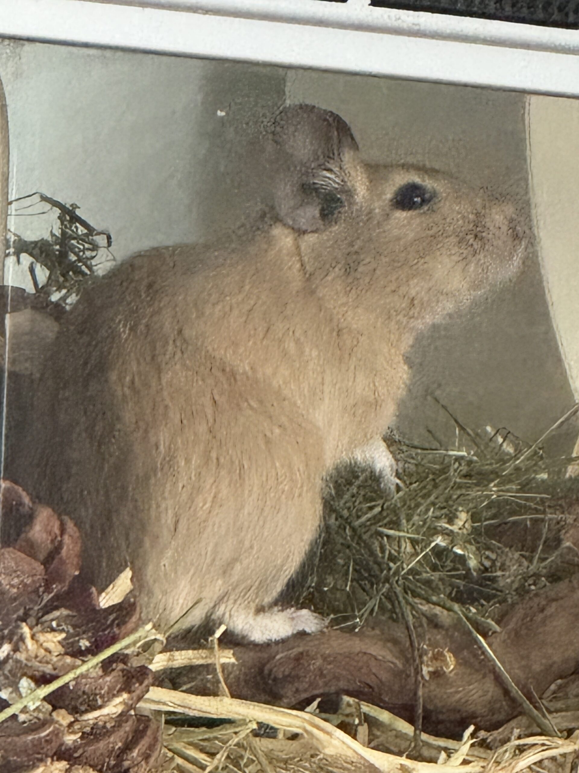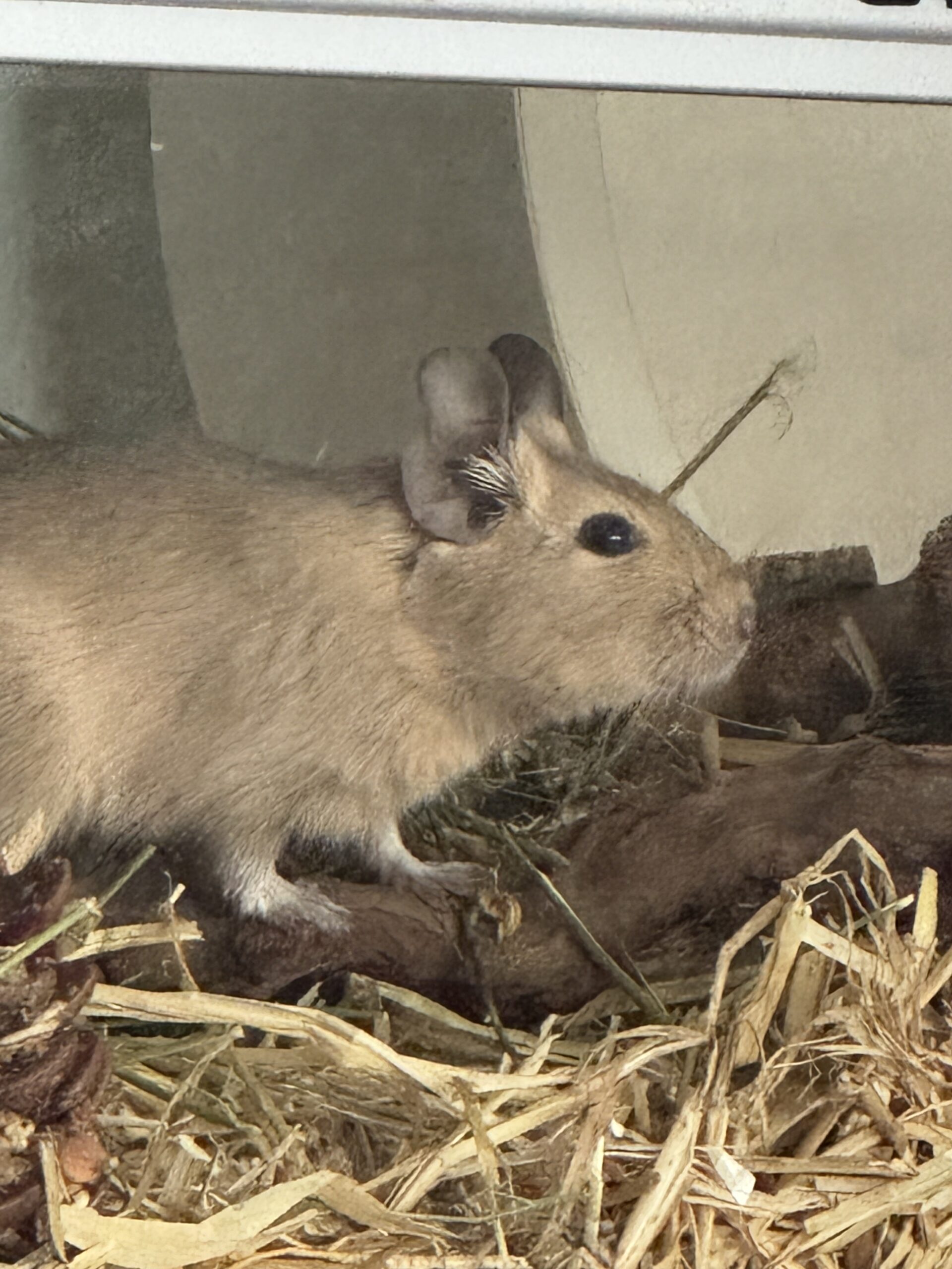 Ich bin etwas über ein Jahr alt und bin super verträglich mit anderen Degus. Menschen gegenüber bin ich gar nicht scheu – eher sehr neugierig.