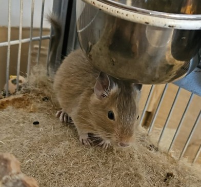 Leider ist ihre Mitbewohnerin im Oktober diesen Jahres verstorben und nach diversen Jahren der Deguhaltung haben wir uns aus privaten Gründen nun gegen einen erneuten Kauf von Degus und somit gegen eine neuerliche Vergesellschaftung entschieden. Nun suchen wir für die junge Tiffy ein neues Zuhause.