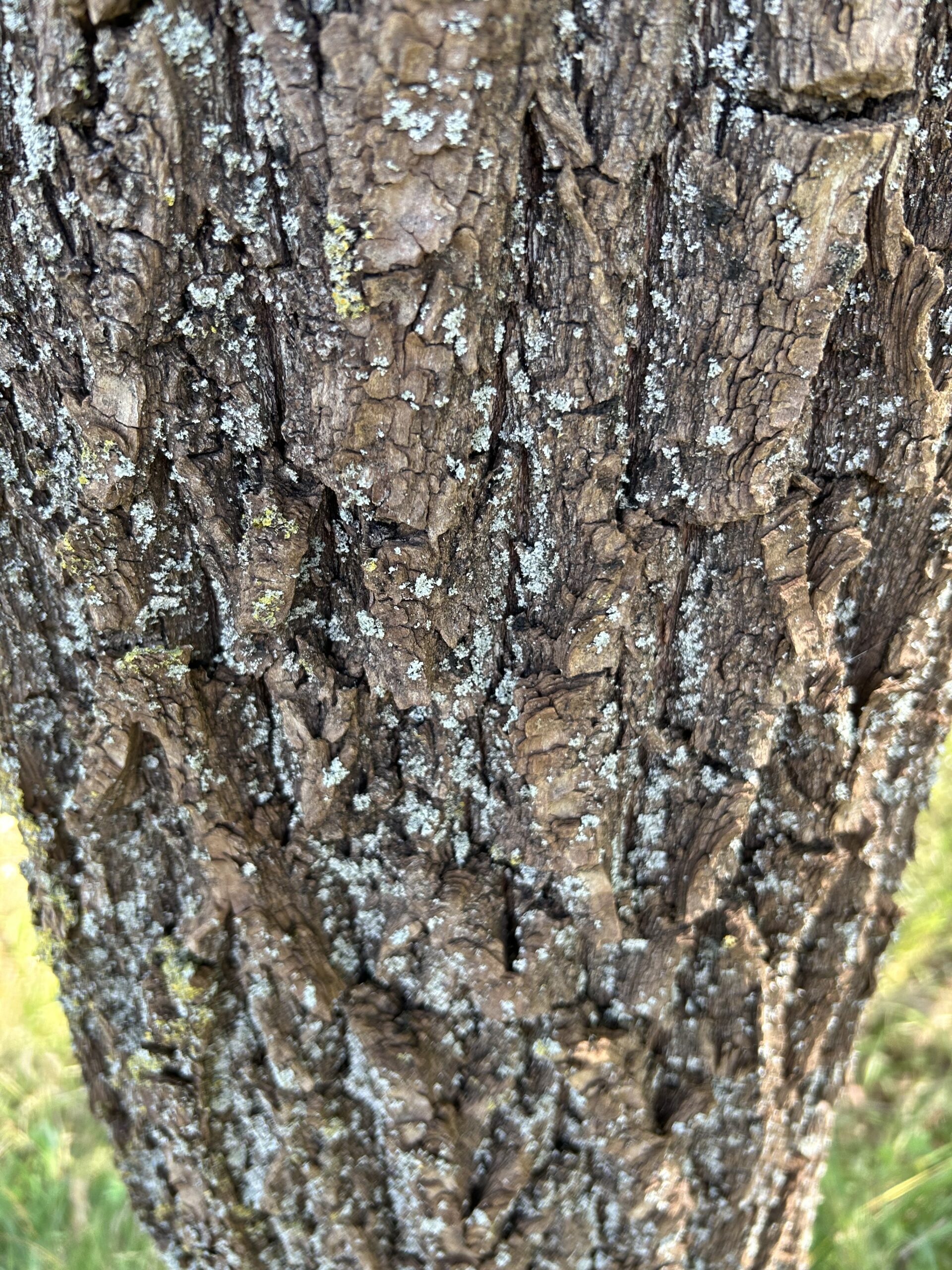 Rinde: Borke graubraun, grob längsrissig.