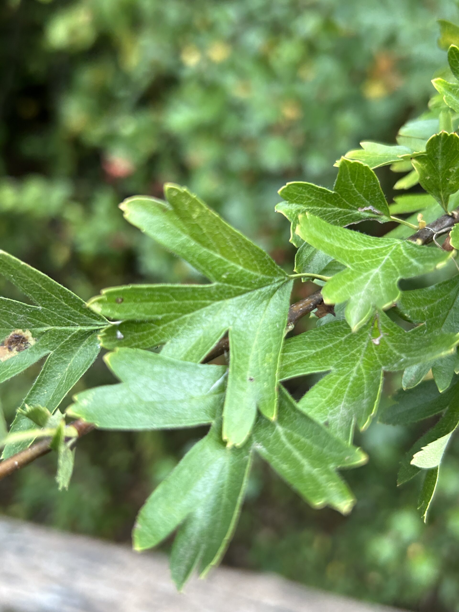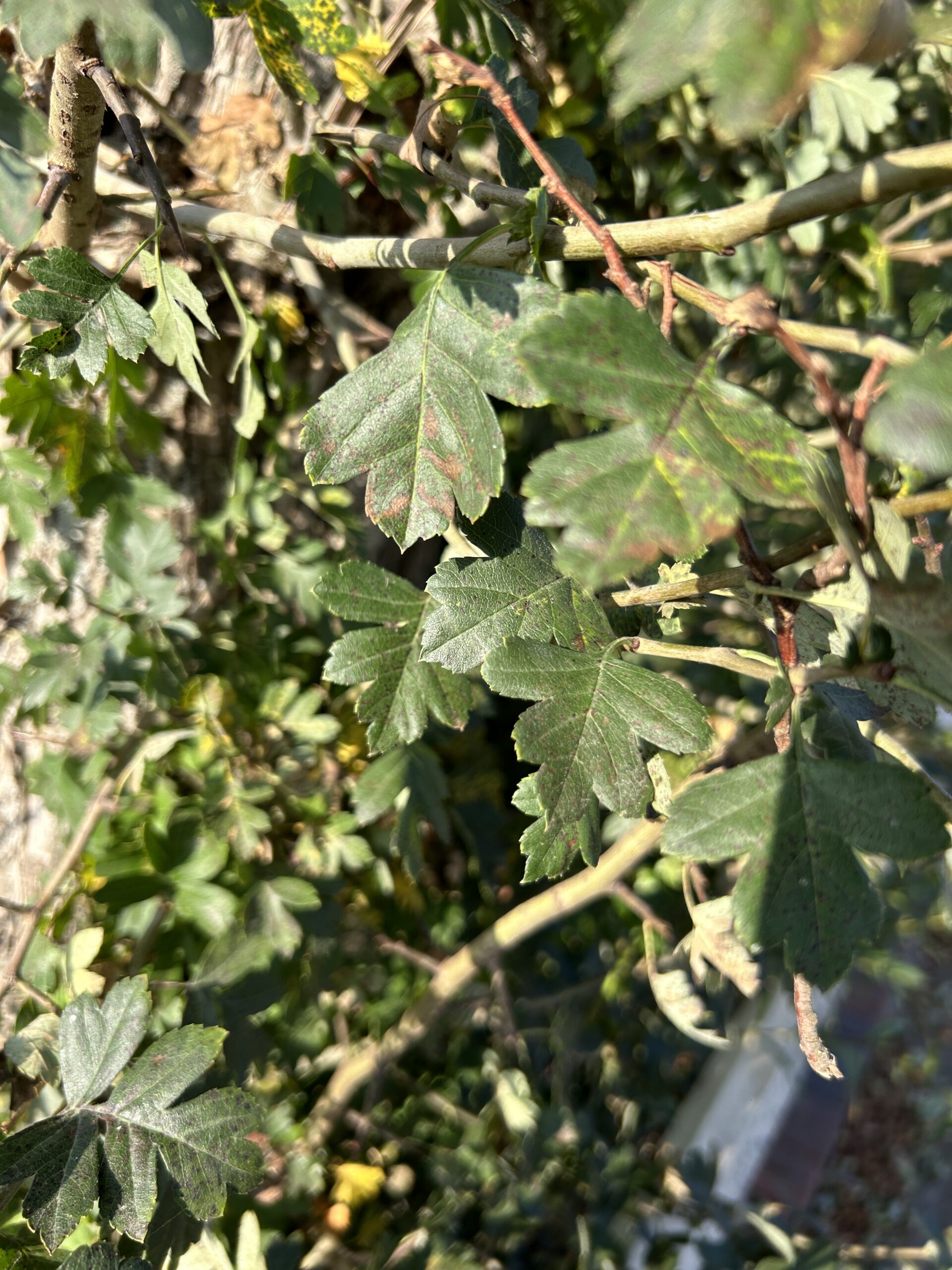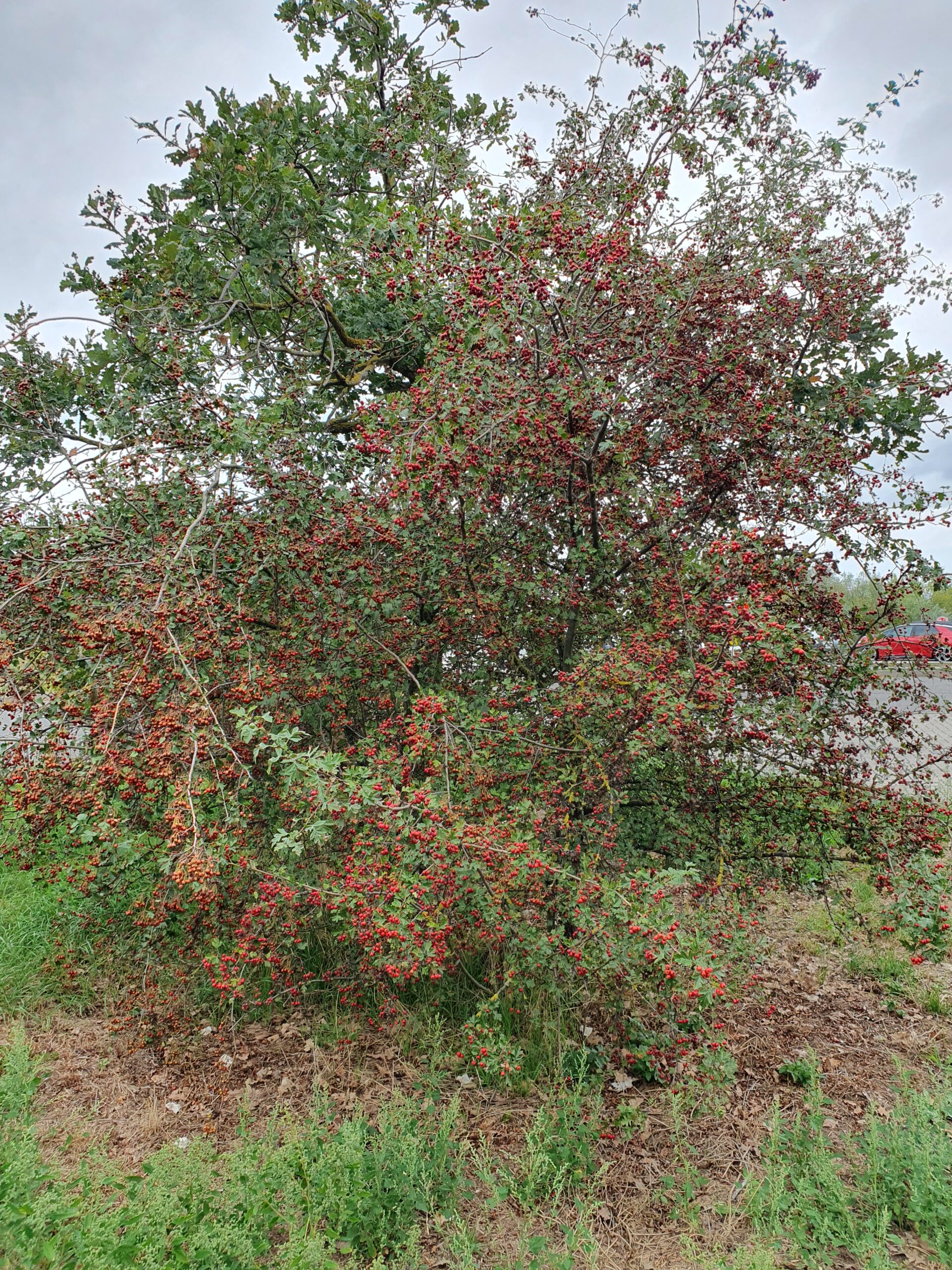 Zweigriffliger Weißdorn (Crataegus laevigata). Unproblematisch.