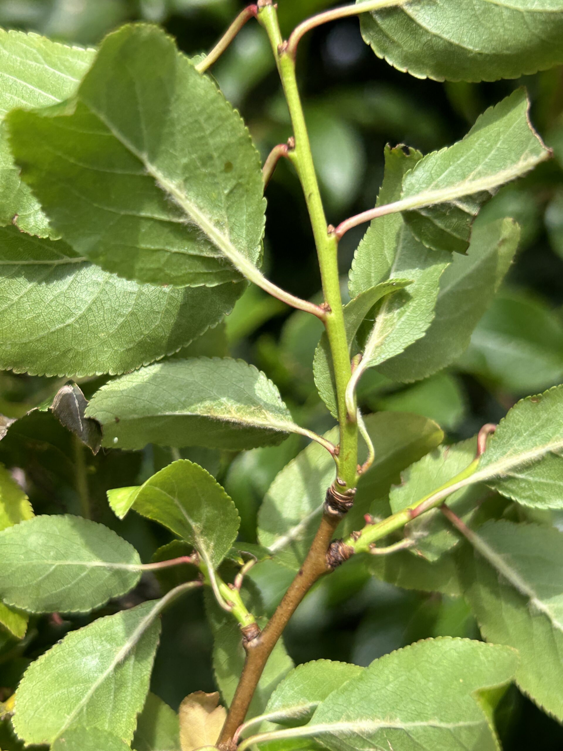 Blatt: Wechselständige, eher kleine, leicht bronzefarben getönte Blätter.