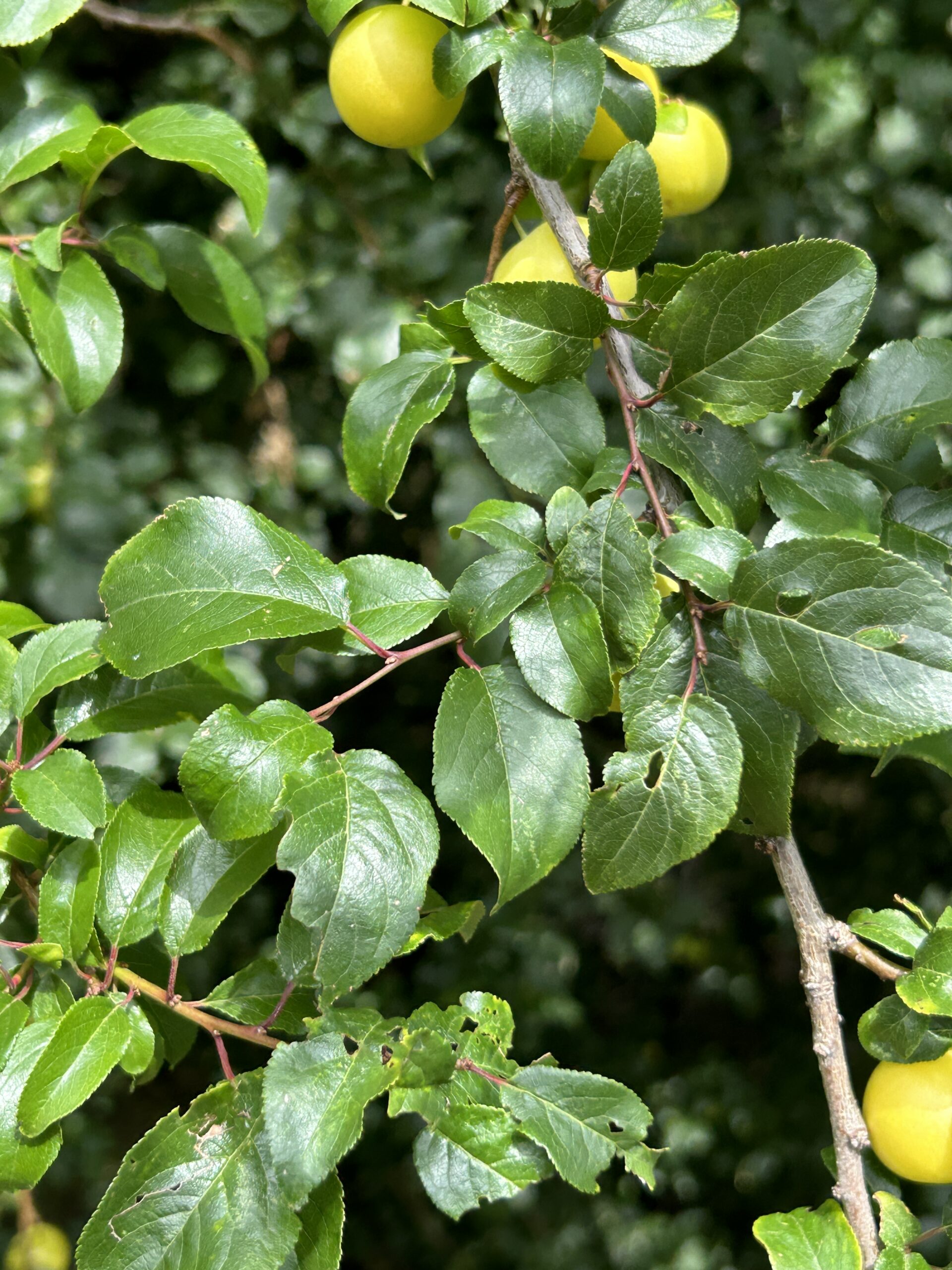 Frucht / Samen: Kugelige, essbare Steinfrüchte, 3,5 cm, gelblich oder hochrot.