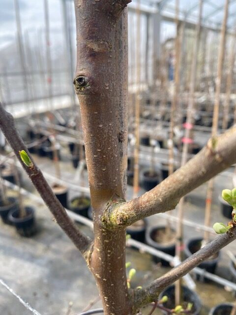 Krone/Äste: Dichte Krone aus starken Ästen und Zweigen, die als junge Triebe zuweilen Dornen tragen.