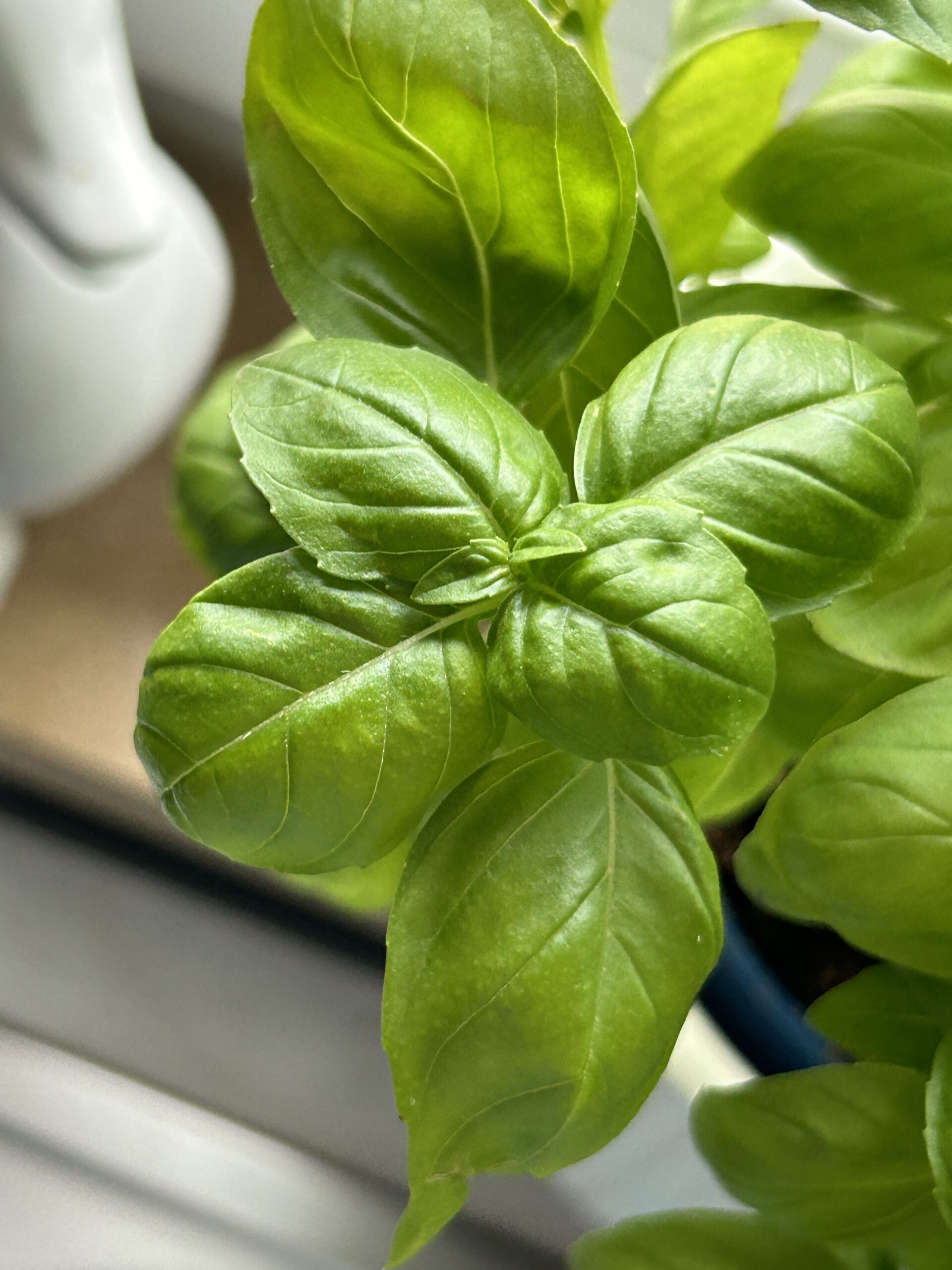 Ocimum basilicum 'Minimum': Zwergpflanze mit buschiger, kompakter, kugelähnlicher Form.