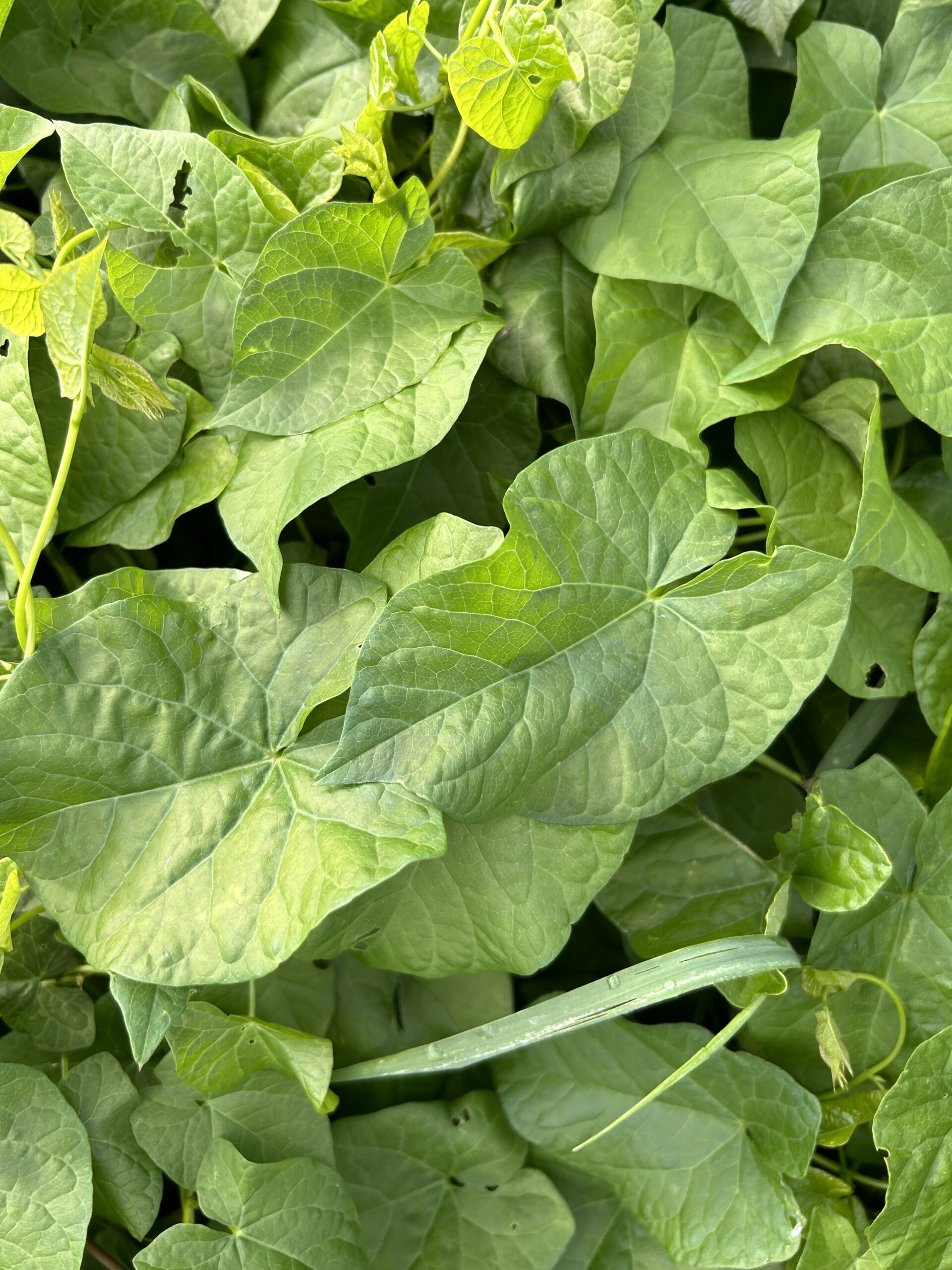 Blatt: Pfeilförmig-dreieckige bis über 10 cm lange Blätter mit ausgezogener Blattspitze. Sie sitzen auf ca. 5 cm langen Stielen.