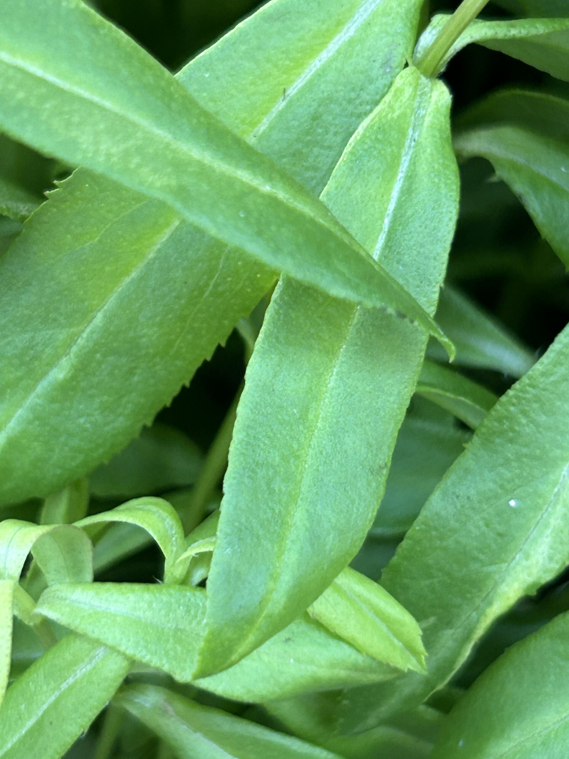 Blatt: Schmale, duftende, grüne Blätter mit zart pfeffrigen Anisaroma.