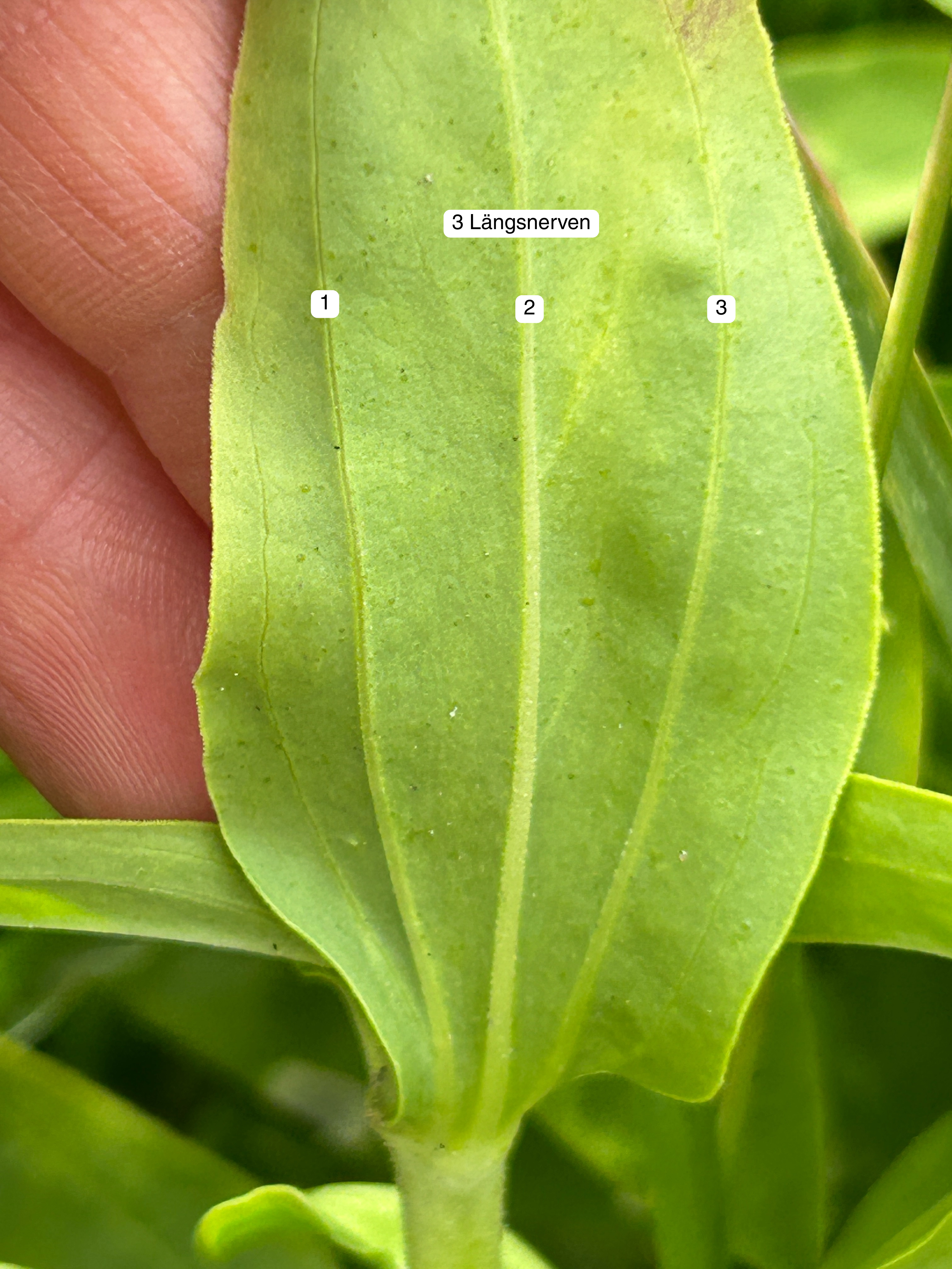 Blatt: Blätter gegenständig, lanzettlich bis eiförmig mit 3 Längsnerven.
