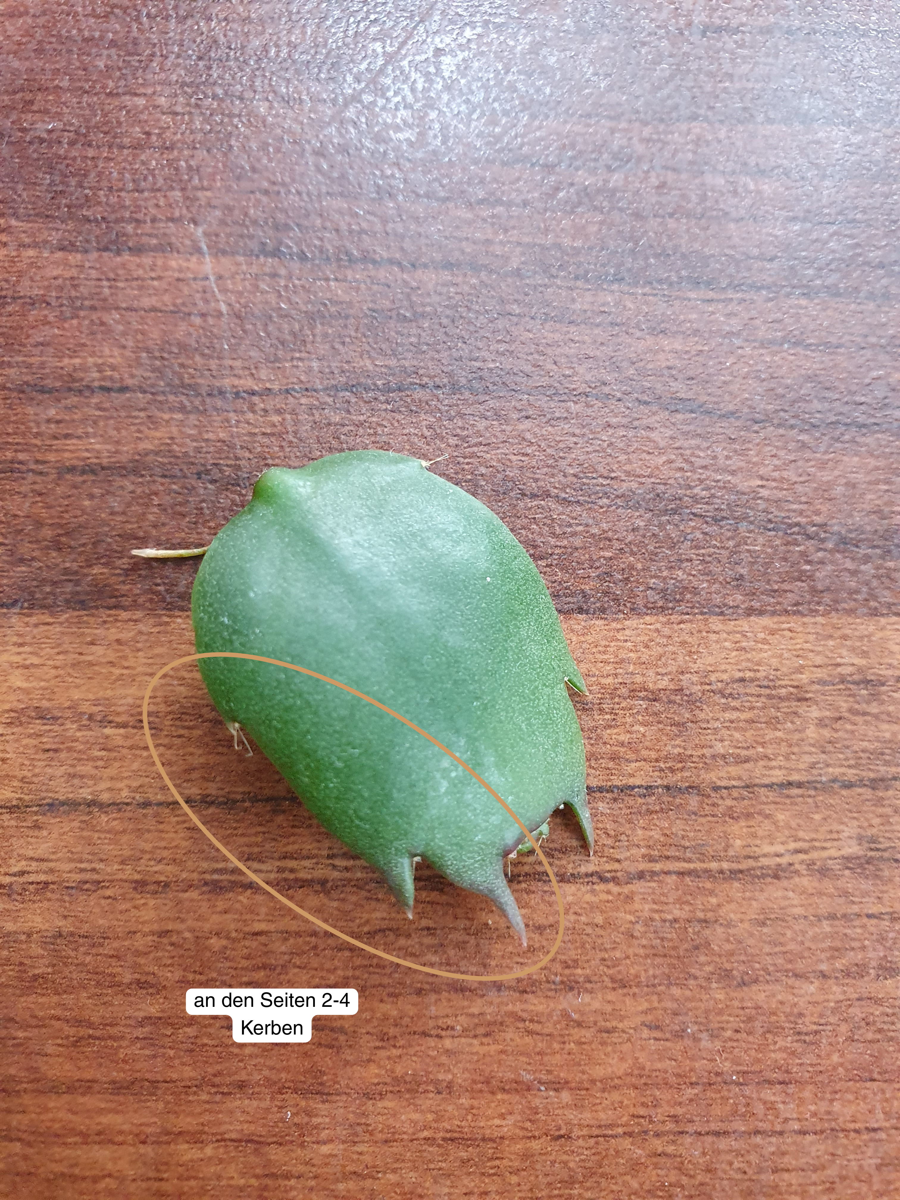 Blatt: Flache Blätter an den Seiten 2-4 Kerben.
