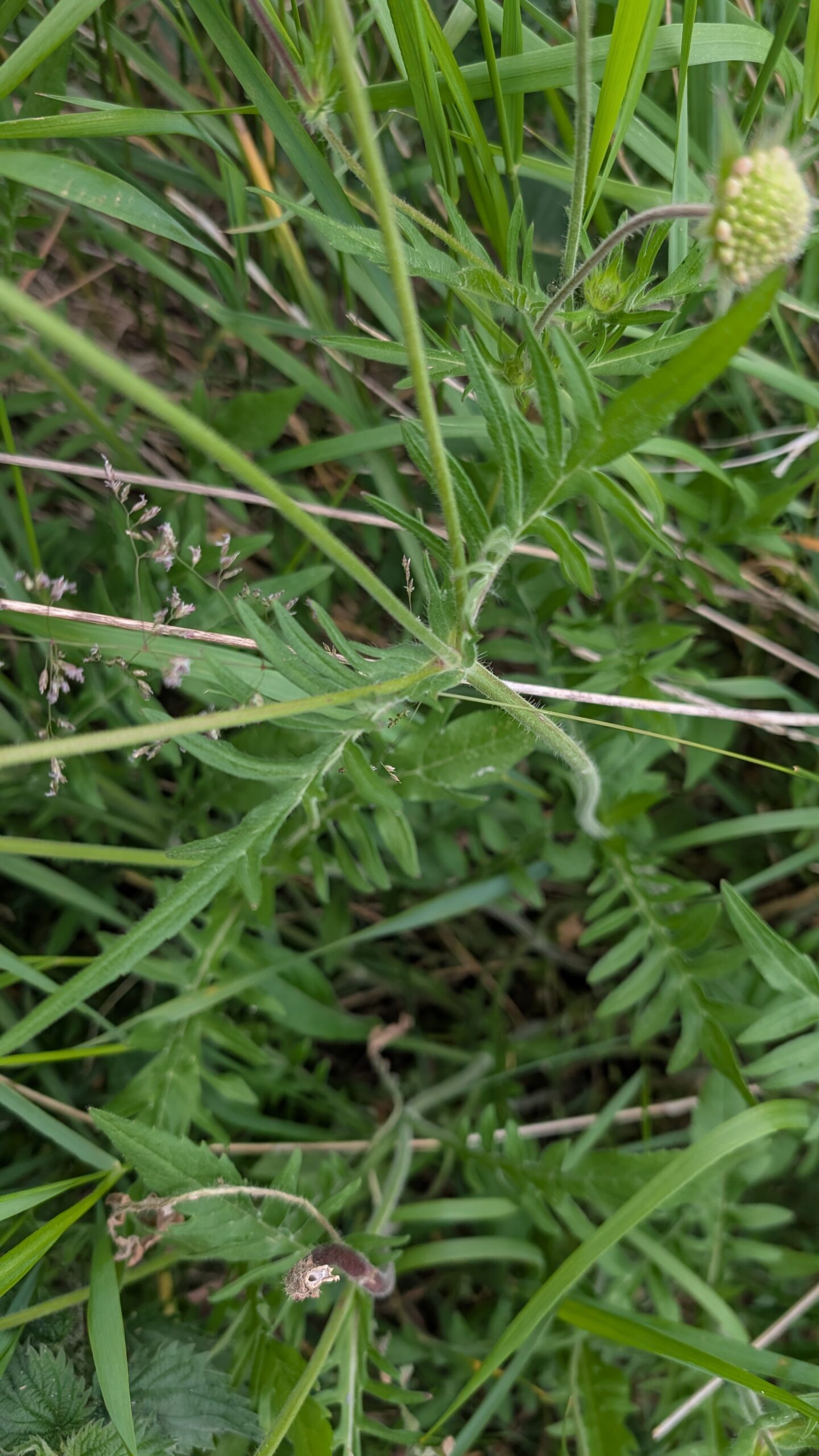 Tauben-Skabiose (Scabiosa columbaria) : 5-zipfelige Blumenkrone, fast unbehaarter Stängel unterhalb der Blütenköpfe (nur wenige anliegende Haare). Unproblematisch.