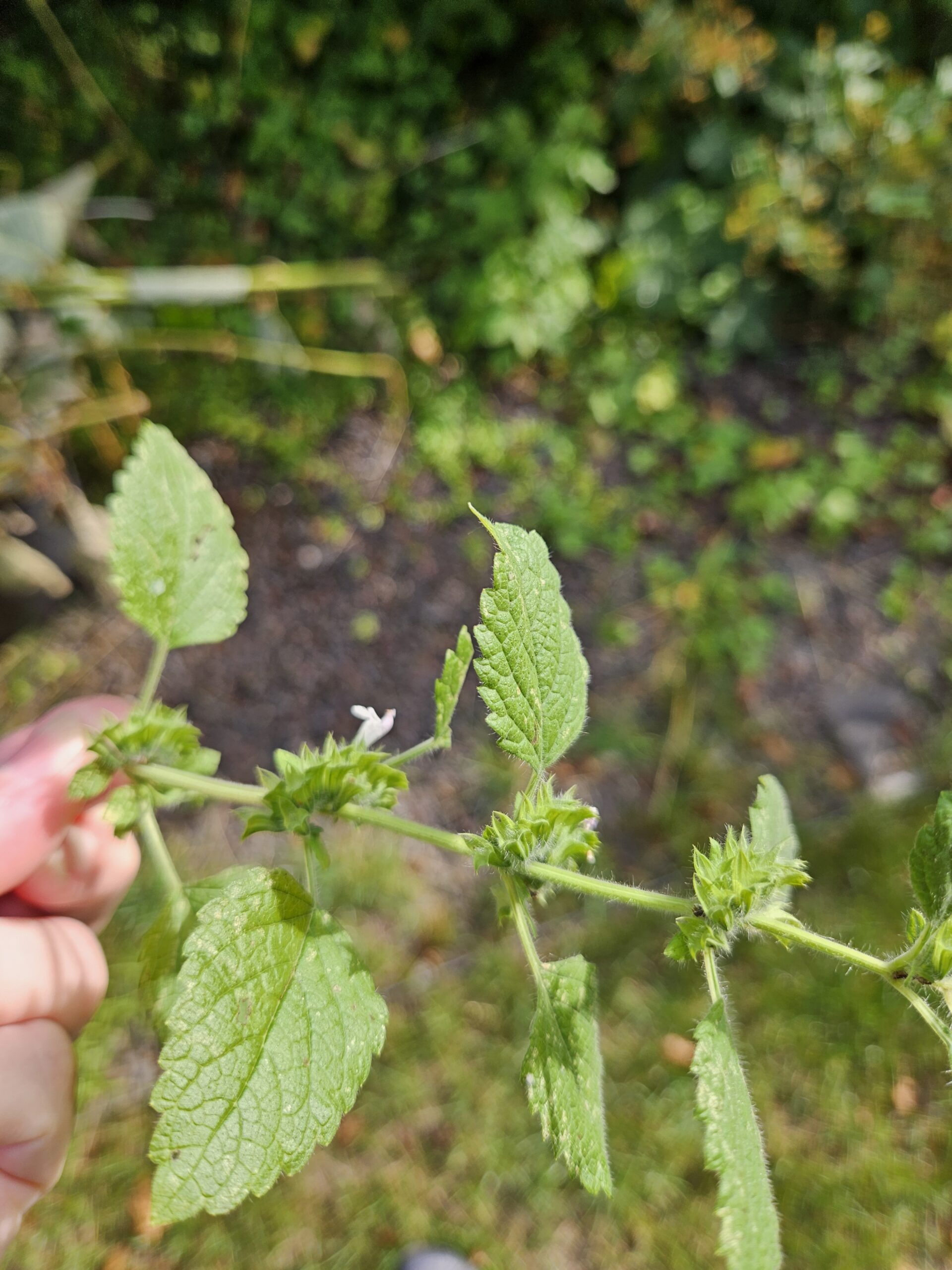 Blüte: Weißlichgelbe oder auch reinweiße Lippenblüten, die als Scheinquirle in den Achseln der oberen Blätter angeordnet sind.